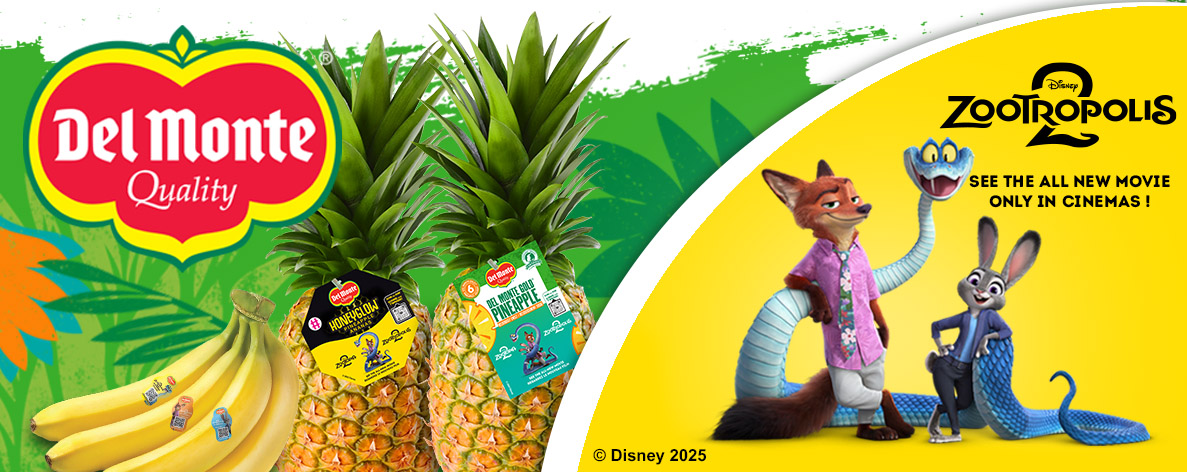 • Co-branded Packaging: Del Monte bananas, Del Monte Gold® Pineapples, and Honeyglow® Pineapples now feature “Zootopia 2” characters on stickers and hangtags, available in-store and online through December 31, 2025.